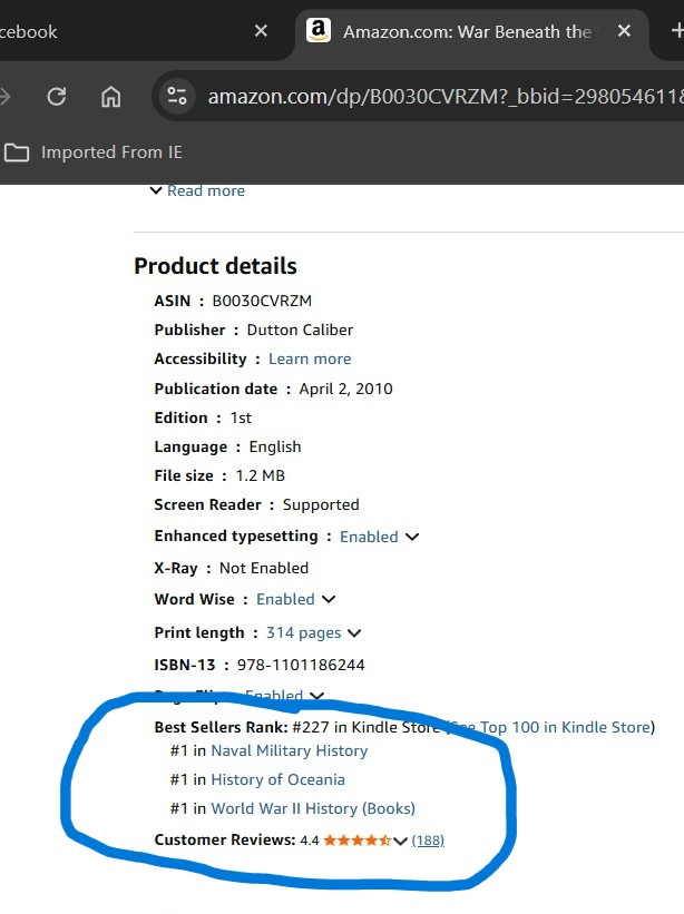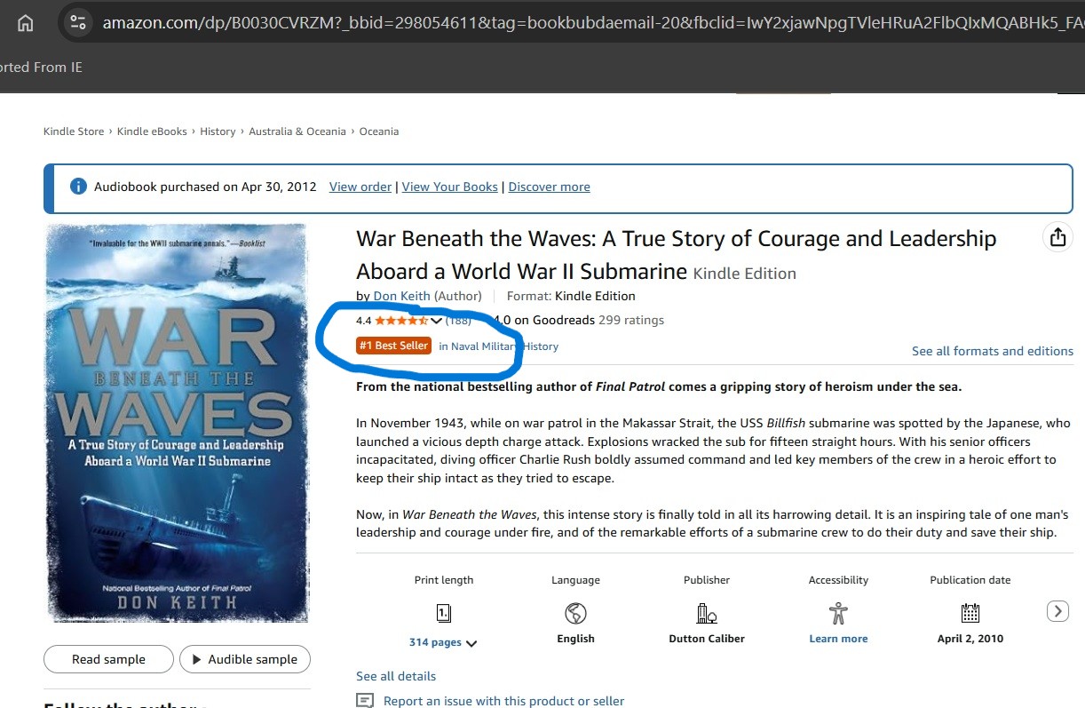 Author Don Keith's non-fiction WW2 book WAR BENEATH THE WAVES has been declared a number one bestseller in several of Amazon's most competitive categories. That includes "World War II History" and "Naval Military History."